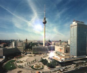 „Licht“ als Konfrontation, Bewegung, ästhetischer Gestalter und Ursprung allen Lebens. Dies waren die Themen des Lichthappenings auf dem Alexanderplatz , das vom 1. bis 15. August 1999 stattfand.